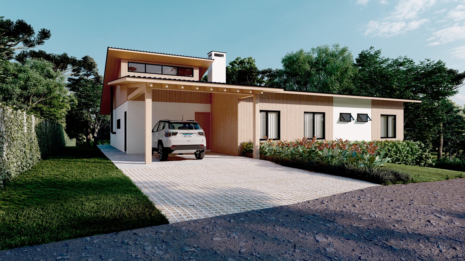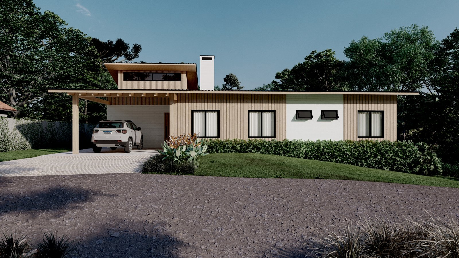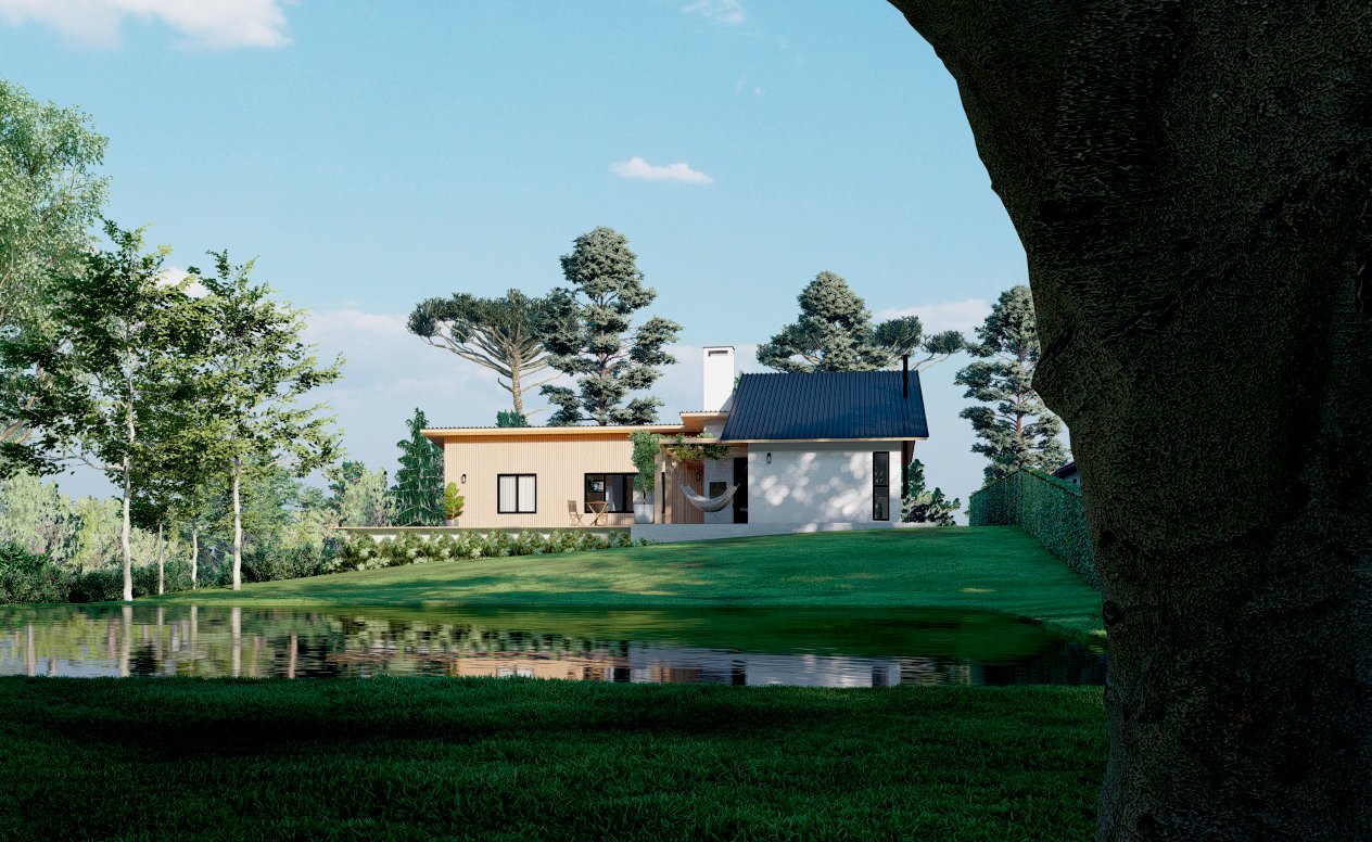 O pedido dos clientes para esse projeto situado em uma área rural, era uma casa mista em madeira, utilizando técnicas vernaculares e alvenaria de tijolos, que fosse voltada para o interior do terreno e tivesse um local para contemplação do pôr do sol. Envolto por vegetação nativa, com várias araucárias e outras espécies, a casa se integra de maneira respeitosa na paisagem bucólica.