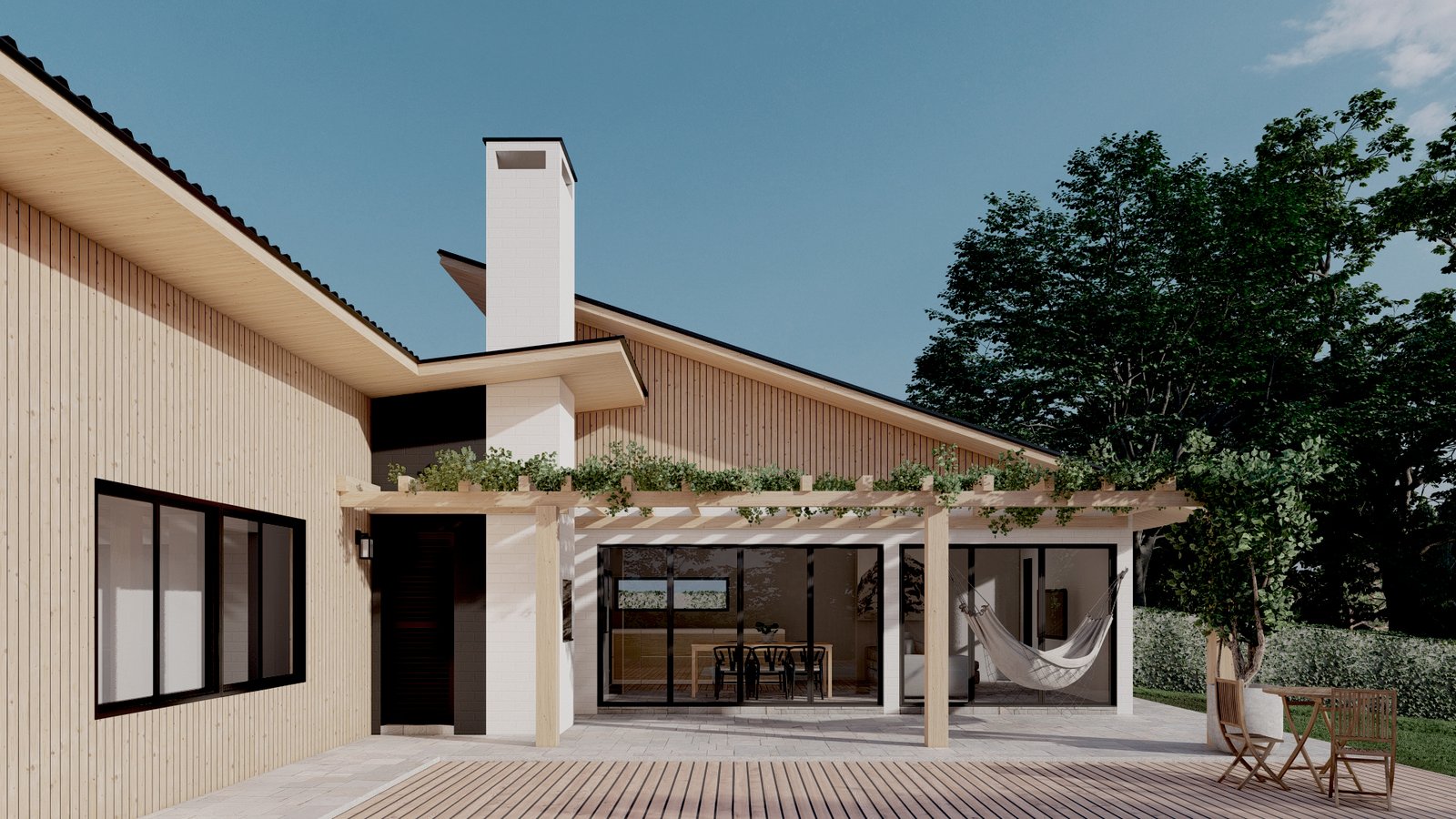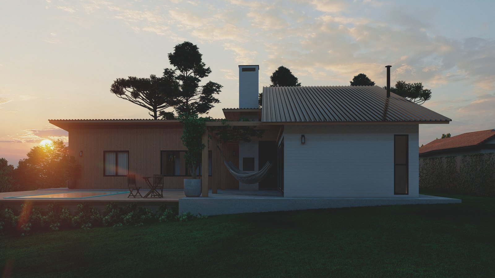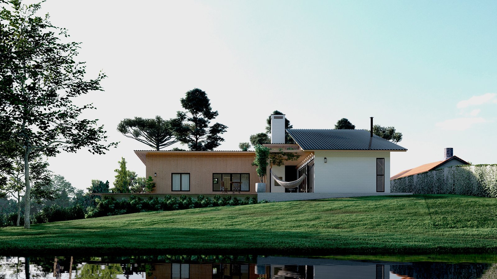 O pedido dos clientes para esse projeto situado em uma área rural, era uma casa mista em madeira, utilizando técnicas vernaculares e alvenaria de tijolos, que fosse voltada para o interior do terreno e tivesse um local para contemplação do pôr do sol. Envolto por vegetação nativa, com várias araucárias e outras espécies, a casa se integra de maneira respeitosa na paisagem bucólica.